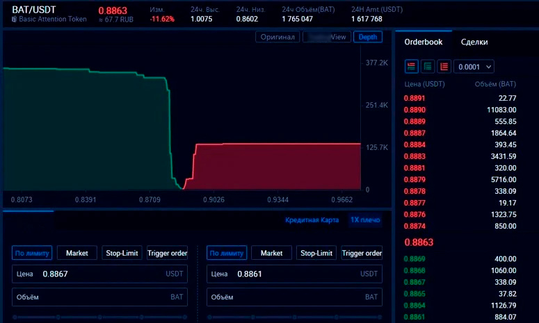 Поскольку BAT представлен на многих криптобиржах, то пользователю будет доступен весь спектр финансовых операций с ним. Торгуется в основном с биткоином и эфириумом.