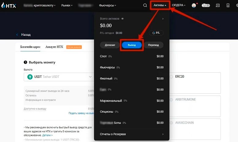 Важно выбирать сеть, соответствующую адресу получателя. Руководство по внесению депозитов в криптовалюте есть в справочном разделе сайта Bybit. На HTX, в свою очередь, можно найти информацию об оформлении заявок на вывод различными методами.