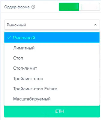 • Отсутствуют настройки для Take profit. Stop-Loss можно задать только в ордерах типа трейлинг-стоп