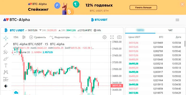 Из дополнительных способов получения дохода, помимо торгов, на площадке доступен стейкинг. Одной из фишек платформы считается возможность социального листинга. Любая монета может быть добавлена на сайт для торговли, если будет поддержана комьюнити BTC-Alpha.